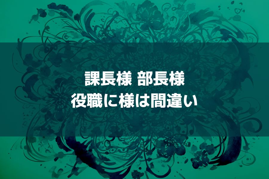 課長様 や 部長様 のように 役職に様を付けるのは間違いです。メールや会話、社内、社外であっても同様です。意外とやりがちな間違いなので、しっかり覚えておきましょう。
